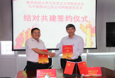 ,近年加大人才引进力度,目前已经形成梯队结构合理、研究成果比较突出的良好发展态势,并成功入选江苏省示范马院;此次同江苏移动网络部党总支展开结对共建,是双方贯彻落实党中央精神、加强校企合作的良好契机,欢迎网络部到南京财经大学向师生们传播先进技术经验,为学生提供职业规划指导。
