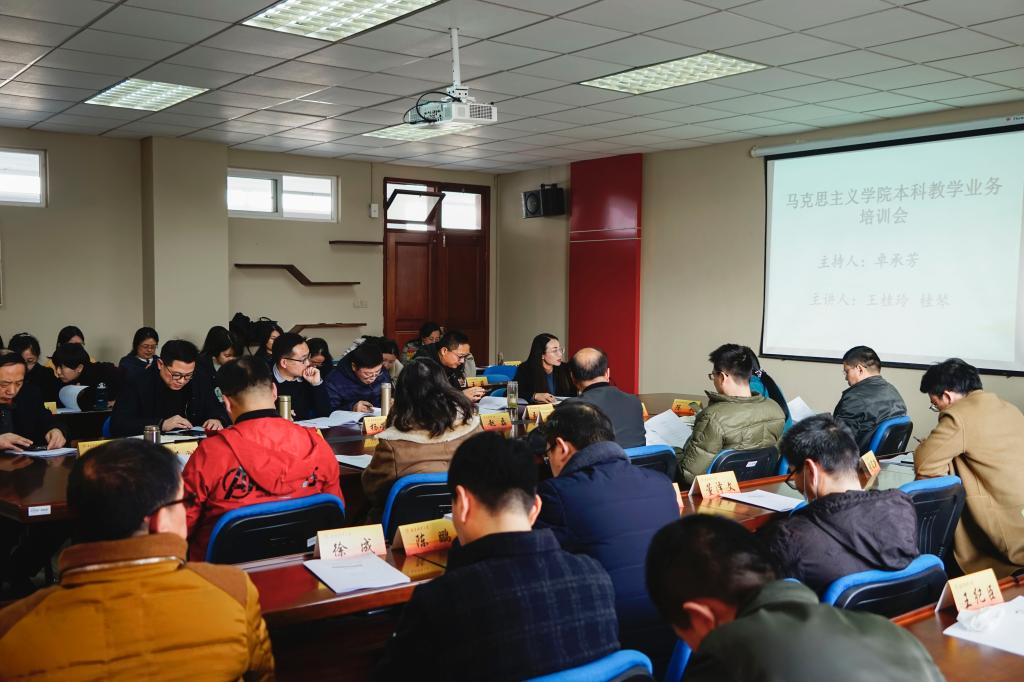 党政领导班子成员、各教研部专任教师和教学管理人员近50人参加了培训会。此次专题培训会由马克思主义卓承芳副院长主持。