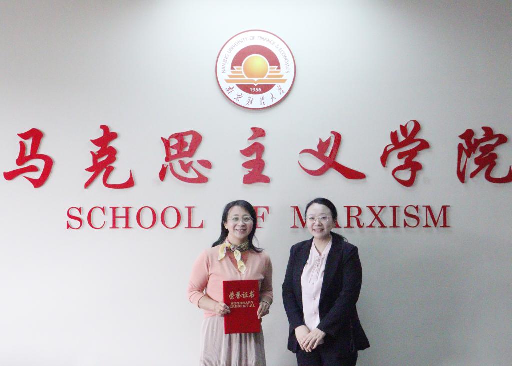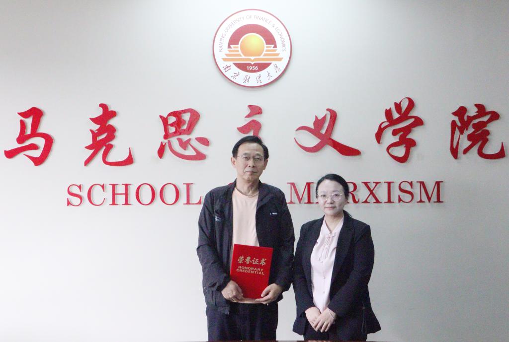 院长卓承芳分别为退休教师曹克、陶蓉颁发荣誉证书。