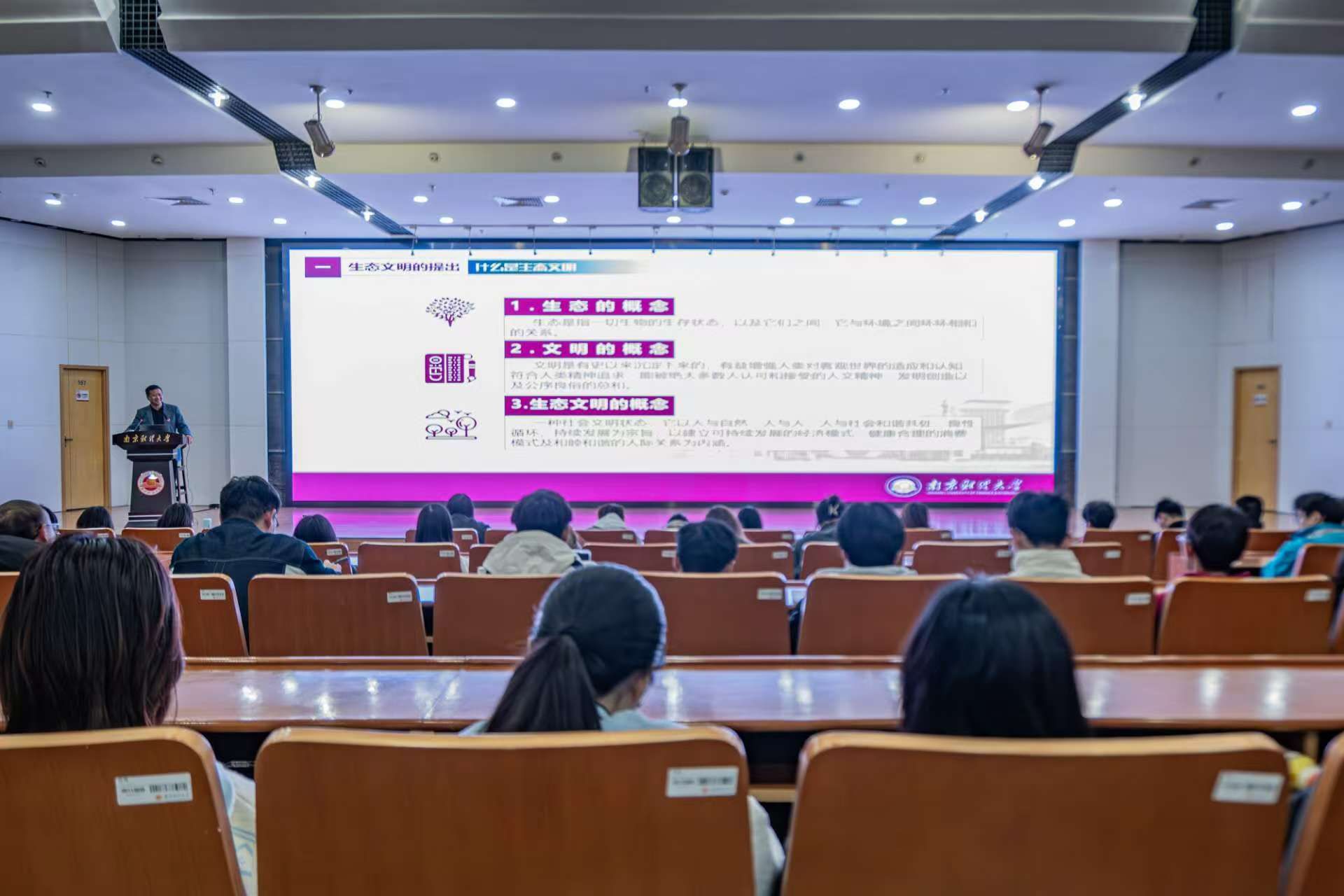 11月22日晚,校党委书记张利民在仙林校区图书馆报告厅为师生讲授了题为“习近平生态文明思想的理论与实践”的形势与政策课。党政办、党委宣传部、学生处、教务处、21点app