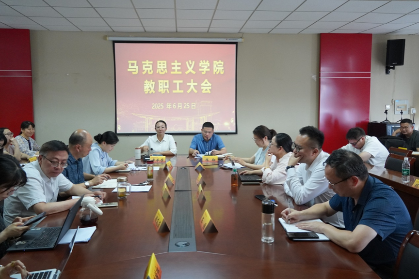 主要工作,充分肯定了教学、科研、研究生管理等方面取得的成绩,也提出了进一步要求。一是落实书记专题会要求,大力加强思政课学风建设,提升“抬头率、点头率、到课率、前排率”。二是力争在国家社科基金项目上实现突破,继续加强“马克思主义理论”学科建设。三是期末教学各项工作按照学校要求有序推进。