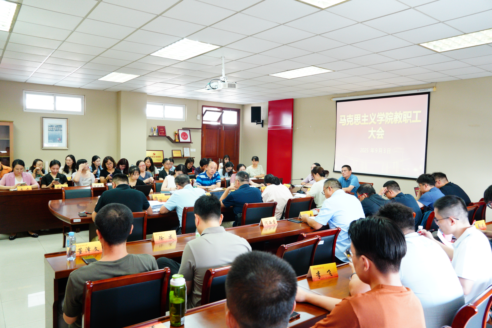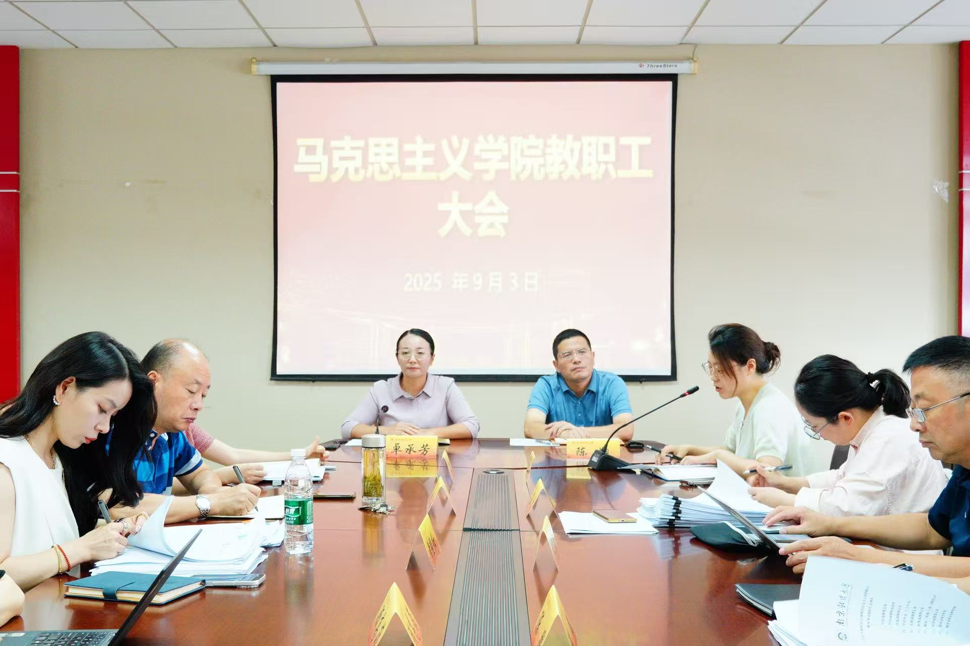解兆丹副院长通报了近期研究生相关工作。殷殷副院长强调了思政课教学规范的重要性并带领全体教师学习了学校相关教学文件。
