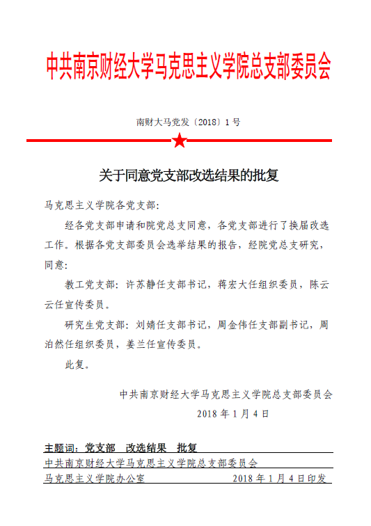 院党总支关于同意党支部改选结果的批复