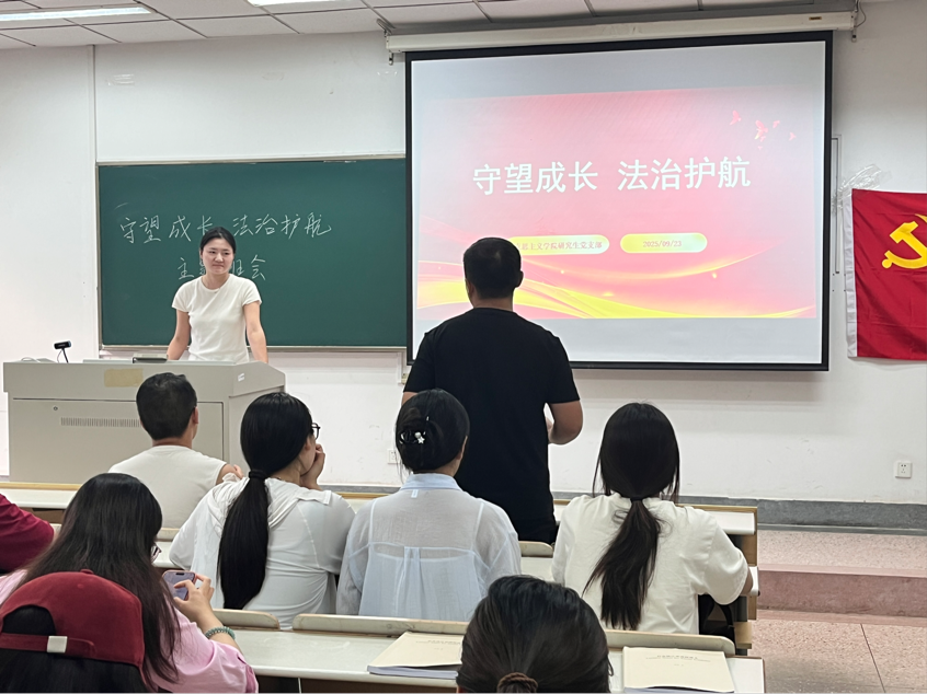 研究生党支部在德正楼204教室成功举办了“守望成长 法治护航”主题班会。班会由纪检委员沈丽君主持,支部全体党员参加。