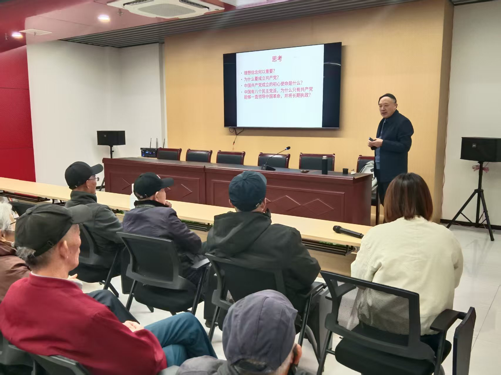 20日上午,我校退休教师王遐见教授应南京市玄武区玄武街道办事处邀请,在花园路社区党群服务中心为40多名老党员作了党课讲座,主题为:《中国共产党精神谱系的价值旨趣》。王教授引导党员们对共产党与其他民主党派、共产党与国民党比较,思考理想信念何以重要?在共产党领导下为什么能打下江山并能守住江山、为什么能使中国由弱到强而不断走向胜利?许多先辈英烈们为什么能不顾自身安危而顽强奋斗?着重对伟大建党精神、红船精神、长征精神、遵义会议精神、抗战精神、赶考精神、抗美援朝精神、“两弹一星”精神、抗洪救灾精神、抗疫精神等系列精神加以分析,声情并茂、透彻明了地诠释共产党精神谱系的历史背景、思想内涵及时代价值,受到与会党员们一致认同和高度评价。