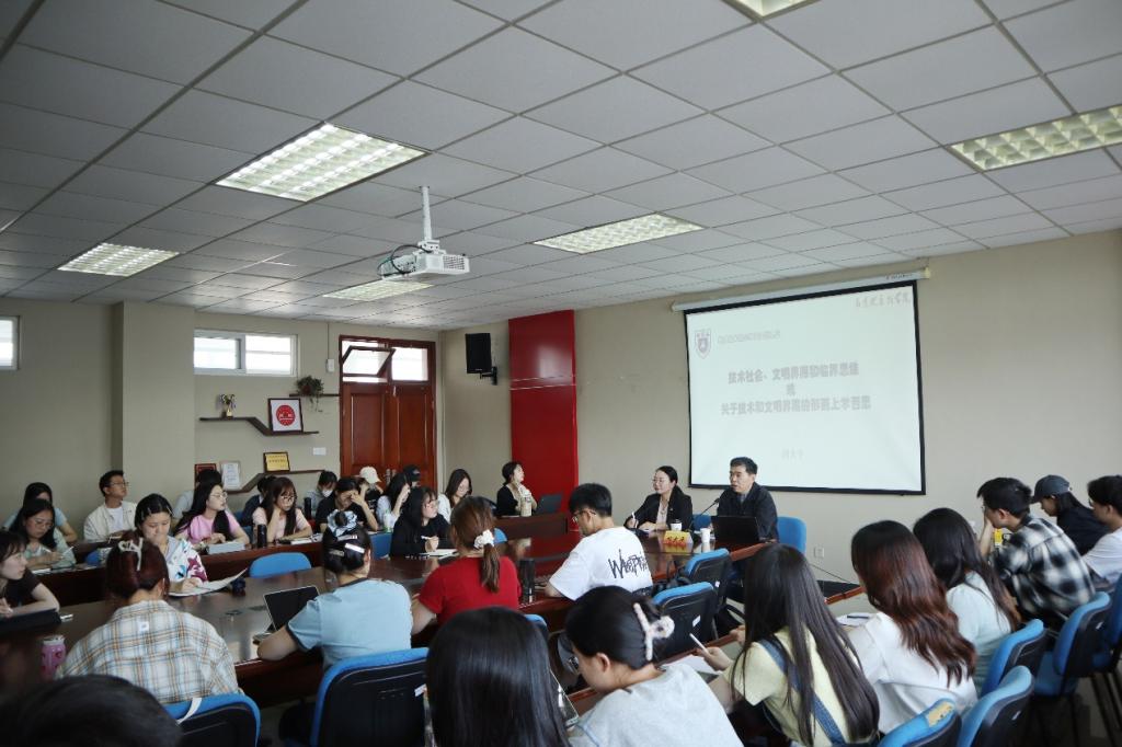 胡大平教授围绕“关于技术和文明界限的形而上学否思”的主题,以严谨、稳重的态度,理性、深刻的语言,为听众们带来了一场极具启发性的学术盛宴。首先,胡大平教授基于批判理论的动向判断,着重强调了技术社会在当今社会哲学和社会理论中的重要地位。其次,胡大平教授从理论层面出发,系统讲解了“技术即人对环境的作用强度”以及“处境的相对化与加速度暴政”等相关理论。再次,胡教授凭借深厚的学术功底,以宇宙社会学问题为切入点,辅以详实的经验材料,明晰了技术与文明之间的界限,进一步深入剖析了二者在“广度、密度、强度和深度”等四个层面的内在联系,为听众们呈现了理解技术与文明关系的认识框架。最后,胡大平教授将技术与文明的关系作为政治的认识论进行升华,强调要从“伟大的技术”迈向“伟大的艺术”,从而为人们提供重新定向和选择的可能性。