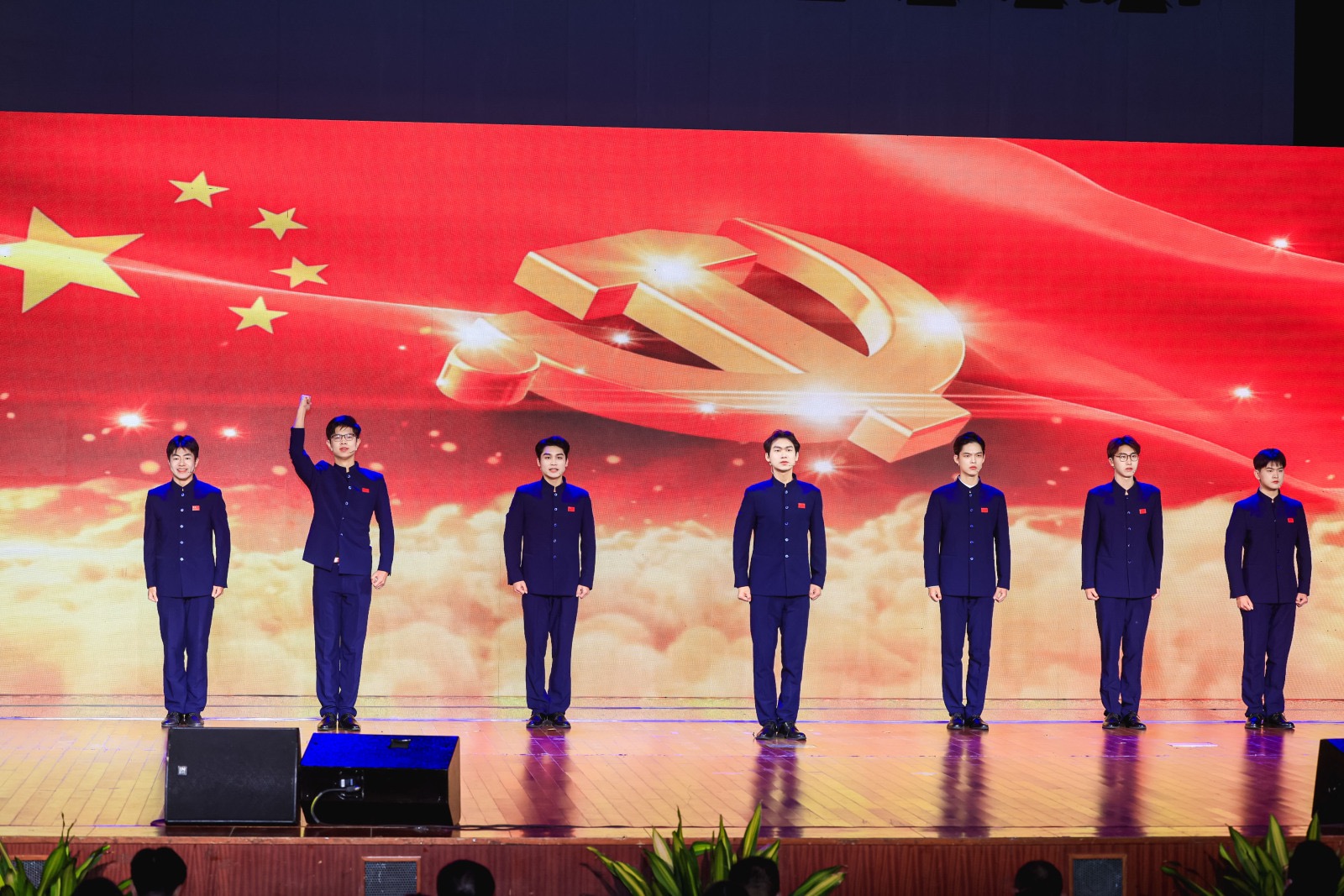 南京财经大学青年大学生带来了我校大艺团原创朗诵作品《旗帜》,充分展现了当代青年大学生听党话、跟党走的坚定信念,以及为实现中华民族伟大复兴的远大抱负和历史使命感。