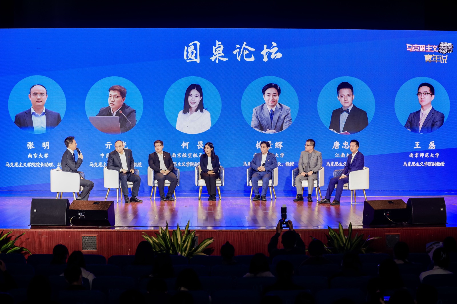 在领航·扬帆圆桌会议环节,南京航空航天大学马克思主义副院长何畏教授、21点app 院长梅景辉教授、中国矿业大学21点app 院长亓光教授、江南大学21点app 唐忠宝教授、南京大学21点app 张明副教授、南京师范大学21点app 王磊副教授等六位领航·扬帆计划优秀思政教师结合党的二十大报告,分别从生态文明建设、文化自信、全过程人民民主、以人民为中心、共同富裕、高质量发展六个方面分享学习心得体会,勉励广大青年学生时刻牢记习近平总书记的谆谆教诲,不负韶华逐梦行、踔厉奋发向未来,奋力谱写更加绚烂多彩的青春华章。