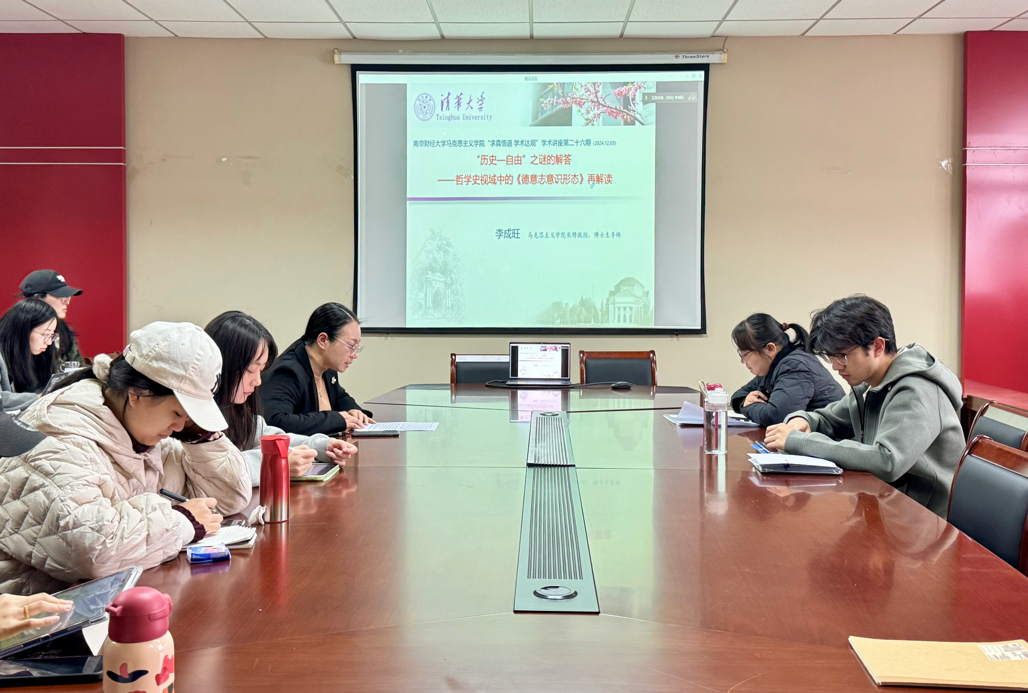 师生作题为“‘历史—自由’之谜的解答——哲学史视域中的《德意志意识形态》再解读”的学术讲座。本次讲座由院长卓承芳教授主持,2023级研究生参与学习。