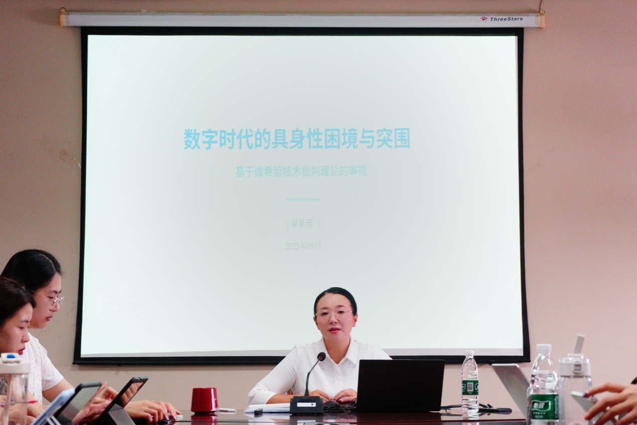 卓承芳教授在讲座中指出,维希留技术批判理论的四大核心命题为理解数字技术影响提供重要视角。当下数字技术发展深刻改变人们生活方式和认知模式,但也带来具身性现实困境。具身感知存在异化,如远程在场使感知互动单向化,数字技术强化视觉致多感官协同能力退化;具身认知存在割裂,算法推荐限制认知广度,情感操控消解理性思考;具身智能存在僭越,工业机器人替代人类劳动,具身智能存在诸多风险。