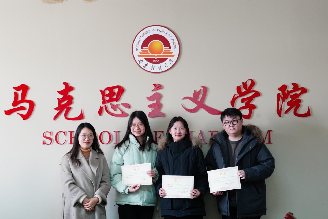 领导及老师为第十一届研究生会主席团成员颁发聘书,同时为2023-2024年度优秀研究生干部颁发荣誉证书并合影留念。
