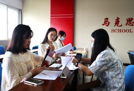 领导老师的悉心指导下,2022年迎新工作有条不紊地开展。迎新团队极有默契地进行着相关工作:到校签到、核对信息、审核各类证书、收取相关材料、分发校园卡及后续事宜的说明。新生们在老师和学长学姐们的耐心引导下顺利地完成了各项入学报到手续。